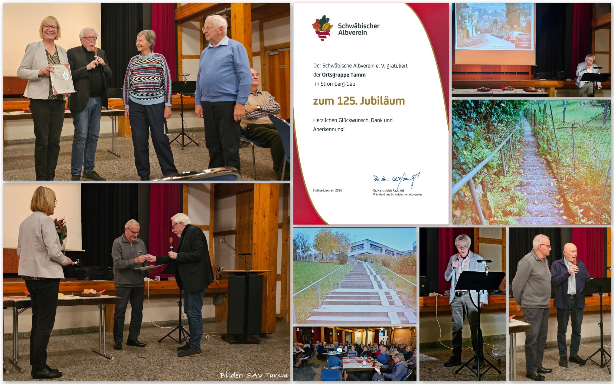 Einen Ehrengast konnten wir begrüßen, Herr Volker Korte vom Präsidium des Albvereins. Er würdigte den Ortsverband für seine 125 jährige Geschichte und überreichte dem Vorstandsteam die Urkunde des Präsidenten Dr. Hans-Ulrich Rauchfuß. Günter Hofmann wurde aus der Hand von Herrn Korte für seine Verdienste für den Ortsverband mit der Silbernadel und einer Urkunde geehrt, verbunden mit einer Laudatio von Horst Rüb.