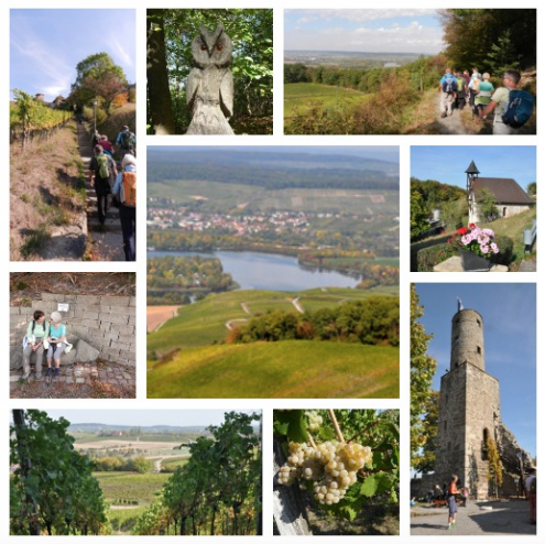 Bei herrlichem Sonnenschein machten sich 26 Wanderer auf zu den Löwensteiner Aussichtspunkten. Vom Breitenauer See ging’s zuerst zu dem „ZwitscherStübchen“ und weiter zum „PirschPfad“. Nach 477 Stufen und einigen weiteren Höhenmetern erreichten wir den „WindHauch“ am Burgturm in Löwenstein. Über das „TierReich“ im Burggraben mit Blick zur „TraumTänzerin“ erreichten wir die „TafelFreuden“. Ein letzter Anstieg zu den „SüßeFrüchtchen“ unterhalb der Aussichtsplatte wurde mühelos bewältigt. Über das „SofaGeflüster“ und durch die Weinberge marschierten wir strammen Fußes zurück zum Breitenauer See. Mit der Einkehr ins Seerestaurant und dem anschließenden Spaziergang über die Flaniermeile am See zum Parkplatz beendeten wir die Oktoberwanderung. Danke an alle Mitwanderer.