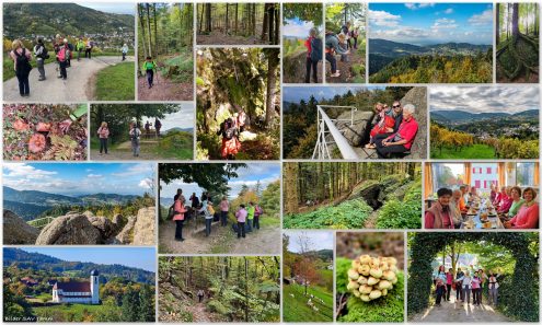 Am Sonntagmorgen versteckte sich die Sonne hinter ein paar Wolken, die sich mehr und mehr auflösten. Die Wanderinnen starteten die Rundwanderung um Bühlertal beim Einstieg des Engelssteiges und eroberten eine der steilsten Weinbergslage Europas. Die erste Pause legten wir an der Lourdes-Grotte ein und später genossen wir den weiten Blick über Bühlertal an der Emil-Kern-Hütte. Durch den Wald mit vielen Maronenbäumen wanderten wir nach Büchelbach. Von nun an ging es stetig bergauf zu unserem heutigem Ziel, der Herta-Hütte. Sie liegt auf dem Falkenfelsen bei 756 Metern. Voll mit vielen weiteren Ausflüglern genossen wir unser Vesper und einen umfassenden Blick auf Obertal und Bühlertal bei schönstem Sonnenschein. Der anspruchsvolle Weg nach unten und auf dem Briefträgerweg erforderte unsere volle Konzentration. Nach runden 14 km und 510 Höhenmetern liefen wir über Naturpfade durch den Kurpark zu unserem Ausgangspunkt. Nach dieser anspruchsvollen Tour haben wir eine Belohnung verdient. So fuhren wir alle nach Bühl in ein bekanntes Kaffee, genossen den dortigen Kuchen bevor wir uns gestärkt auf den Heimweg machten. Ein großes Kompliment an die Mitwanderinnen, die diese anspruchsvollen Wege und die Auf- und Abstiege mitgemacht haben.