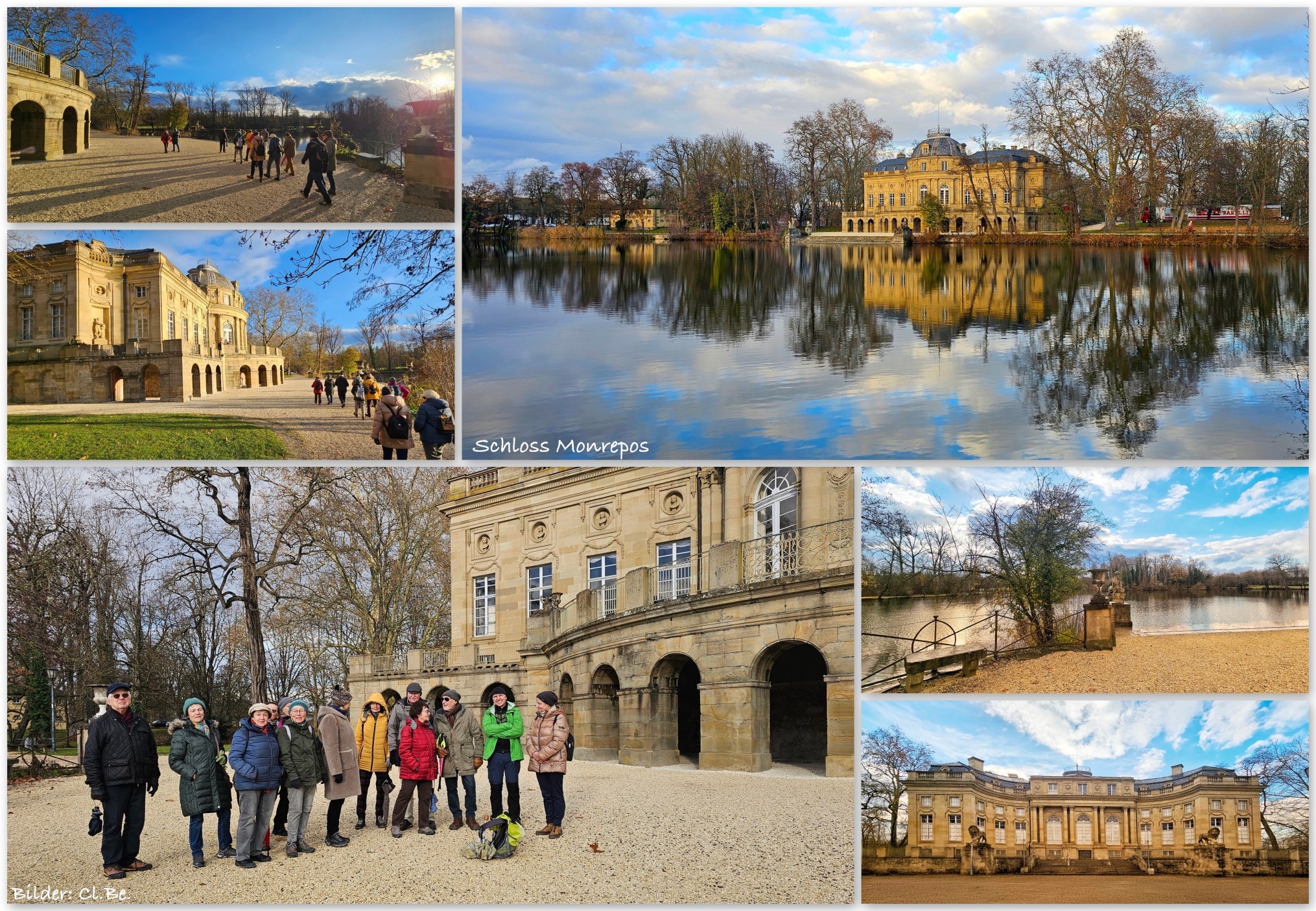 Aus einem herbstlichen Spaziergang wurde eine winterliche Wanderung zum Monrepos See. Die kalten Temperaturen und Schneeregen mit Griesel hielten eine starke Gruppe nicht davon ab, zum Monrepos See zu laufen. Winterlich ausgestattet und mit Regenschirm ging es Richtung Ludwigsburg. Kaum angekommen am Schloss, tauchte auch schon ein Stück blauer Himmel auf. Die Holzhütte war bewirtschaftet und so kehrten wir in die gut geheizte Hütte ein, genossen Kaffee und Kuchen und sogar ein erster Glühwein wurde bestellt. Erfrischt und erwärmt machten wir uns auf den Rückweg, genossen den herrlich frühen Wintertag bei blauem Himmel, weißen Wolken und das Schloss Monrepos im Sonnenlicht. Informationen zum Schloss und der ehemaligen Parkanlage wurden den Wanderfreunden vorgestellt, die für einiges Erstaunen sorgte. Zufrieden von der gemeinsamen Tour in netter Gesellschaft kamen wir nach rund 7 km wieder in Tamm an.